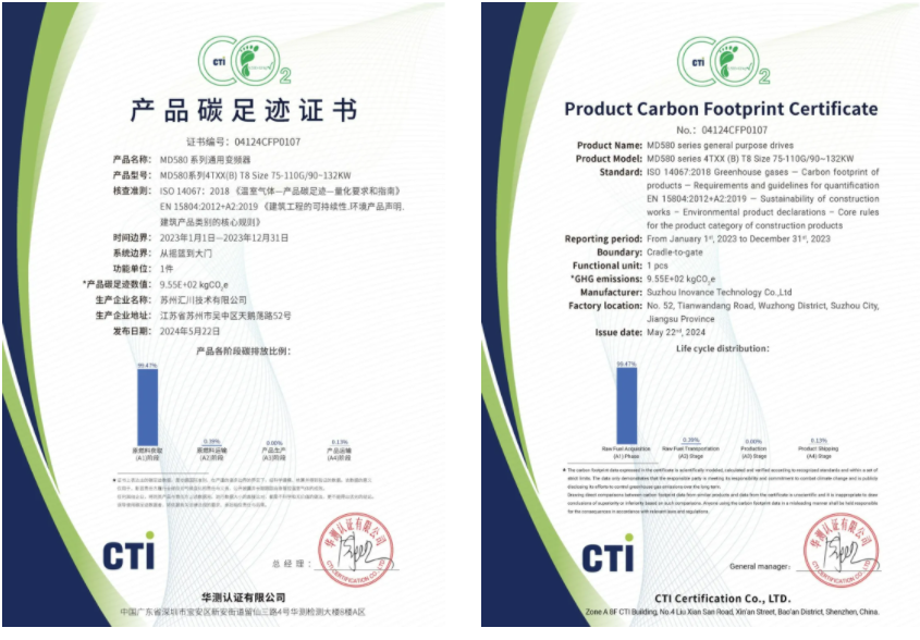厚植可持續發展的綠色底色,匯川MD580獲產品碳足跡證書